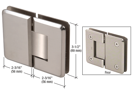 The Pinnacle Hinge is similar to our popular Geneva Series Hinge, but with one design change: Pinnacle has radius corners and beveled edges for a sleek appearance. Pinnacle Hinges accommodate 5/16″ (8 mm) to 1/2″ (12 mm) thick tempered safety glass, and are self-centering when within 15 degree of the closed position.