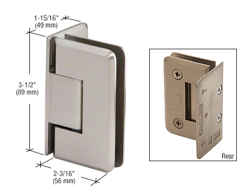 The Pinnacle Hinge is similar to our popular Geneva Series Hinge, but with one design change: Pinnacle has radius corners and beveled edges for a sleek appearance. Pinnacle Hinges accommodate 5/16″ (8 mm) to 1/2″ (12 mm) thick tempered safety glass, and are self-centering when within 15 degree of the closed position.