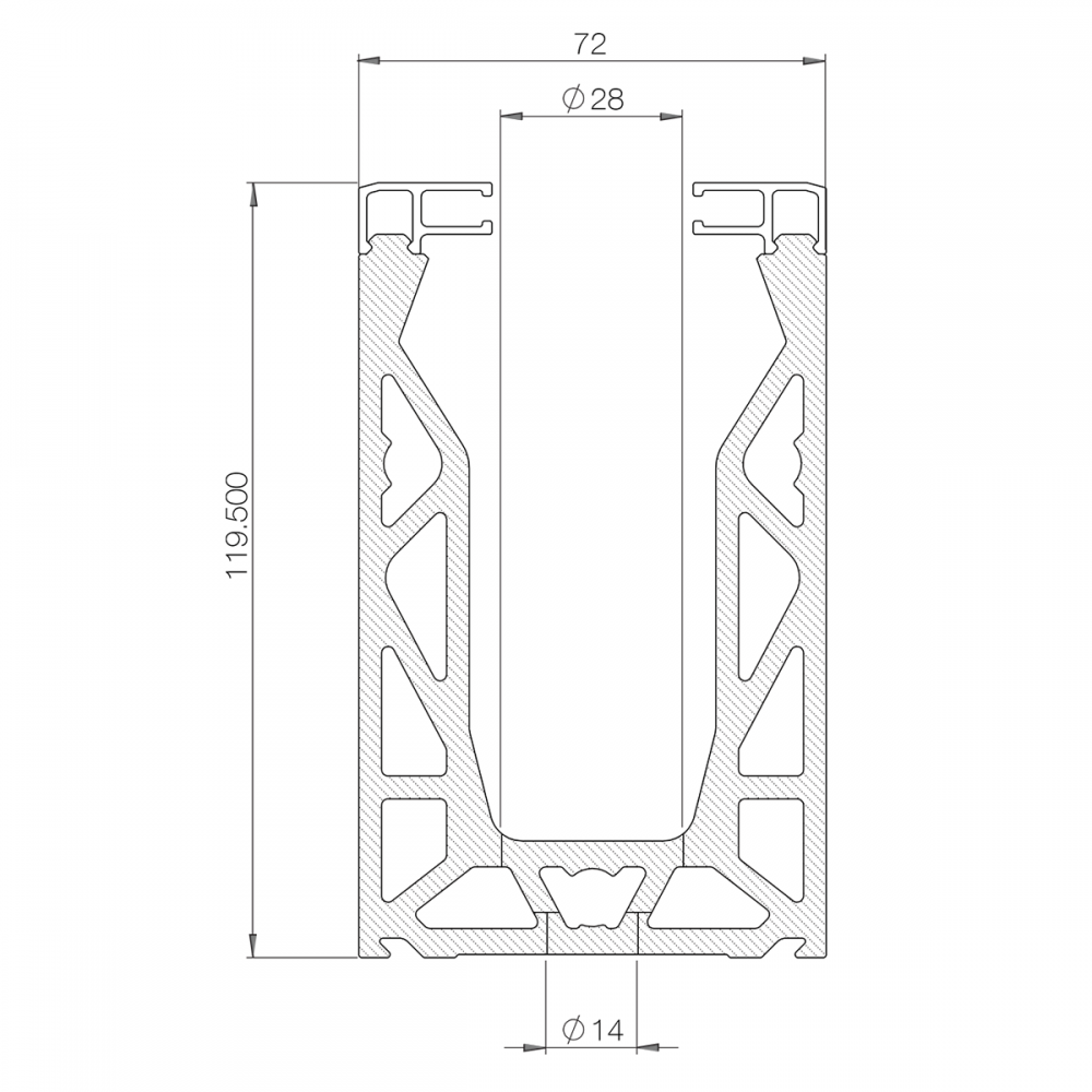 - The hole is to suit a 12mm fixing bolt and is counter bored to sink the bolt head. Drilled through both walls to allow a socket through.