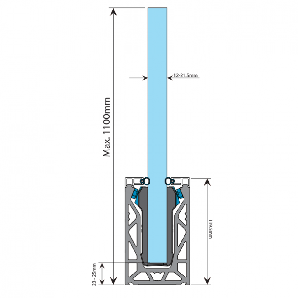 - Can withstand loads up to 1.5kN with the correct glass selection