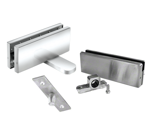 Hydraulic Patch all glass door set consisting of a hydraulic patch fitting with backcheck, top door patch fitting and top centre-hung free swing pivot.